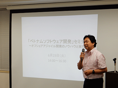 | セミナータイトル | 「ベトナムソフトウェア開発」セミナー 〜オフショアアジャイル開発のノウハウと実情〜 |