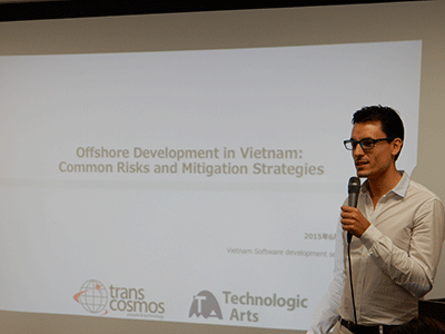 今なお注目され、更に活発化するベトナムオフショア開発ではありますが、まだまだ多くのプロジェクトが様々な課題に直面しています。 昨年末、弊社現地法人もトランスコスモス(株)との共同出資会社として再出発致しました。現状に甘んじることなく、高い品質を求めて、マネージメント力/コミュニケーション力/開発技術等々、日々改善活動を続けております。 今年は、その弊社現地法人トランスコスモス・テクノロジックアートCEOのMinh Le(リー・ミン)が来日し、最新のベトナムオフショア開発の現状と、当社が得意とするアジャイル手法による開発事例を通じて、現存する様々な問題や課題を交えて講演いたします。 さらに、例年講演頂いております、オフショア大學の幸地様には、オフショア開発先としての中国とベトナムの違いに着目しながら、抑えておきたいプロジェクト推進の為のノウハウをご講演頂きます。 皆様のご参加をお待ちしております。
